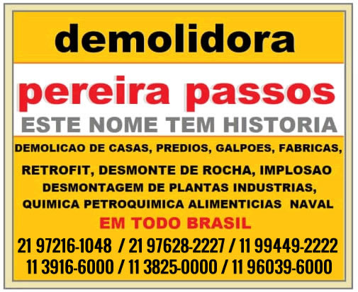 A Demolidora Pereira Passos tem como atividade principal os serviços de demolição e terraplanagem. Nossa empresa trabalha para promover soluções em demolição de concreto, escavação e drenagem. Oferecemos as melhores soluções para os nossos clientes, trabalhando com qualidade e extrema segurança. Nossos profissionais são qualificados e treinados na área com alta experiência.